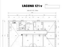 Moderná drevostavba Laguna 121 ma zaujímavo riešený pôdorys. Ponúka vstup do záhrady francúzskym oknom z každej izby. Obývacia izba je spoločná miestnosť s kuchyňou a jedálenským stolom. V dome je pracovňa či izba pre hostí a spálne majú svoj vlastný samostatný šatník. Laguna ponúka komfortné bývanie pre 4 člennú rodinu a aj tento dom môže byť bezbariérový.