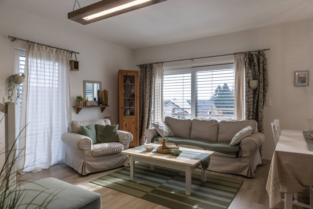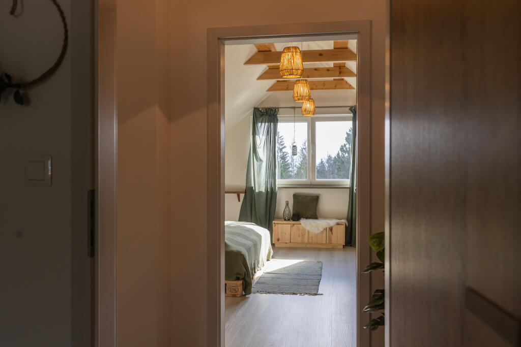 „Vždy sme túžili po mieste, kde by sme dokázali na chvíľu vypnúť,“ hovoria majitelia chalupy Maroš s manželkou Beatou. Ticho, pokoj, žiadny mestský hluk – len výhľady na Oravskú Maguru a možnosť vyraziť na turistiku, lyže či bicykel. Okolie ponúka všetko, čo rodina hľadala: pokoj, prírodu a široké možnosti trávenia voľného času.
