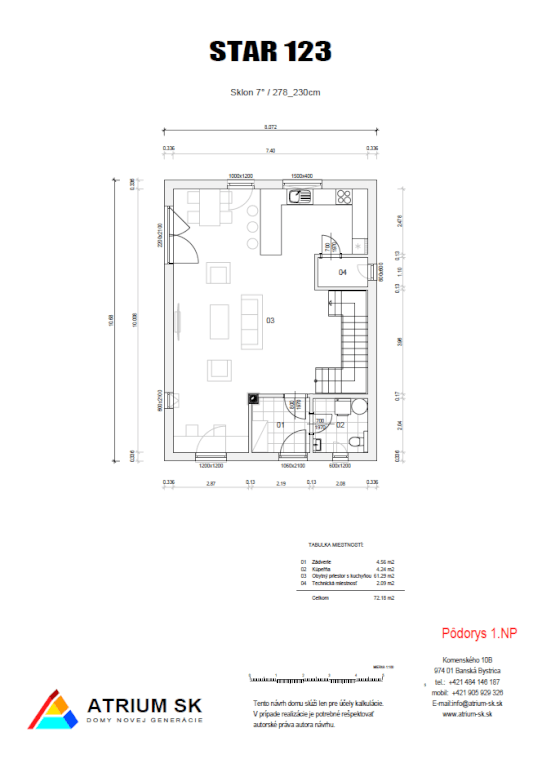 - ZASTAVANÁ PLOCHA: 79,4 m2, pôdorys domu 10,60 x 8,07 m