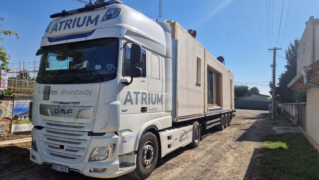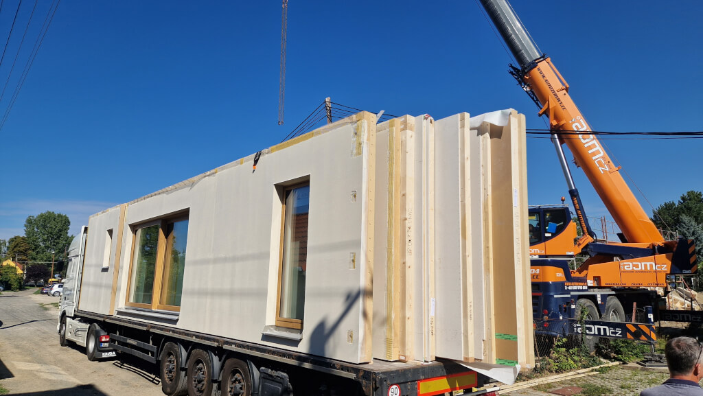 Práve prebieha montáž drevodomu - v jednotlivých krokoch výstavby .