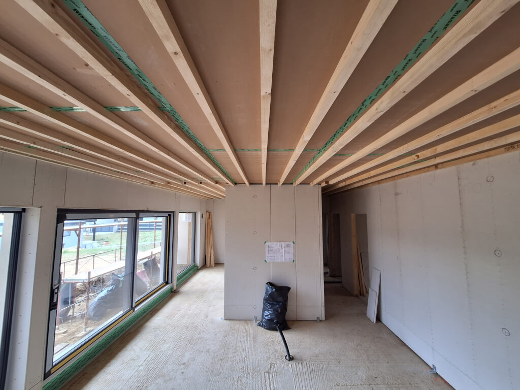 Práve prebieha montáž drevodomu - v jednotlivých krokoch výstavby .